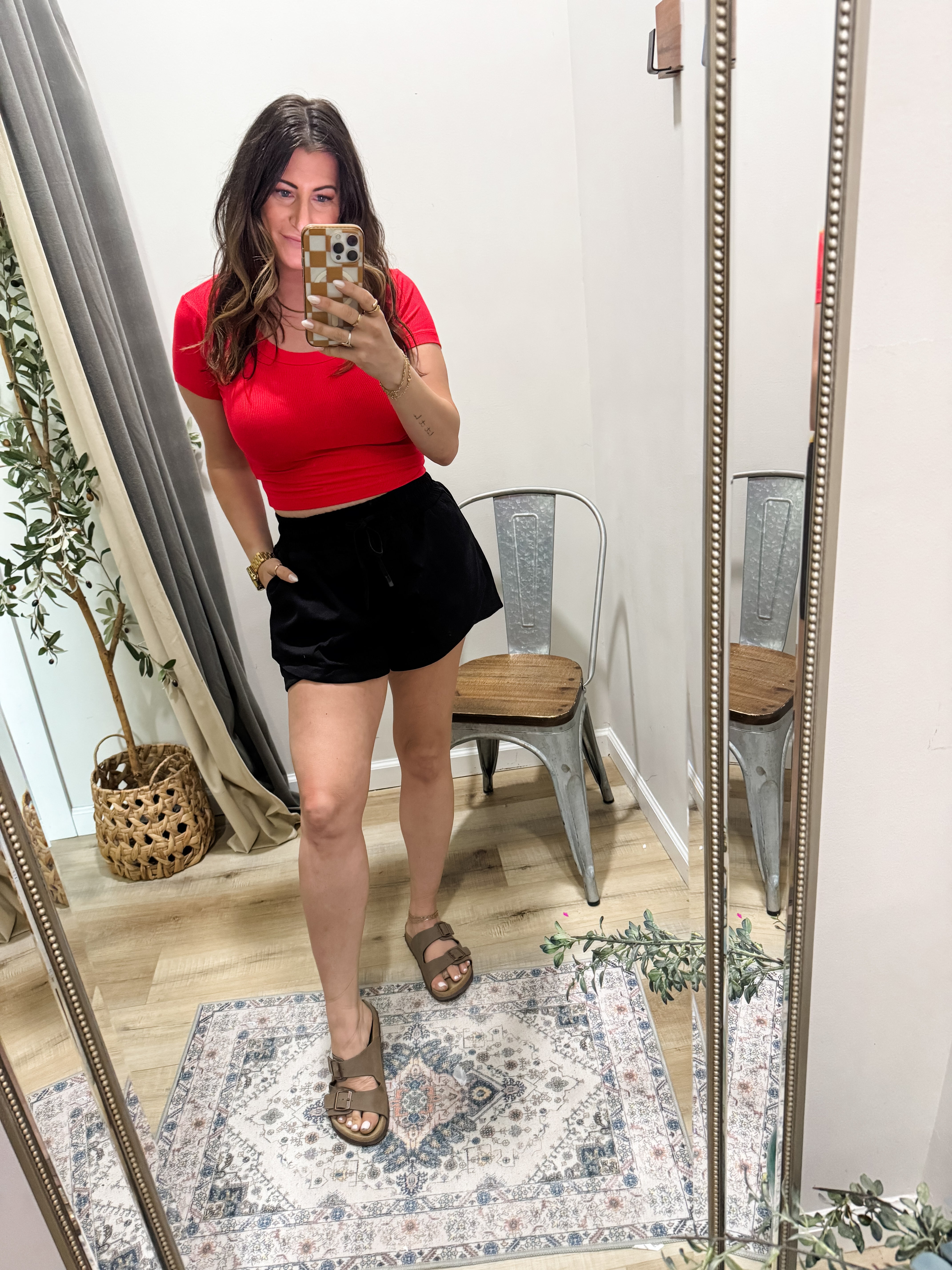 These drawstring sweatshorts feature practical pockets for convenient storage. The adjustable drawstring ensures a comfortable and secure fit. Stay stylish and comfortable all day long in these versatile sweatshorts.