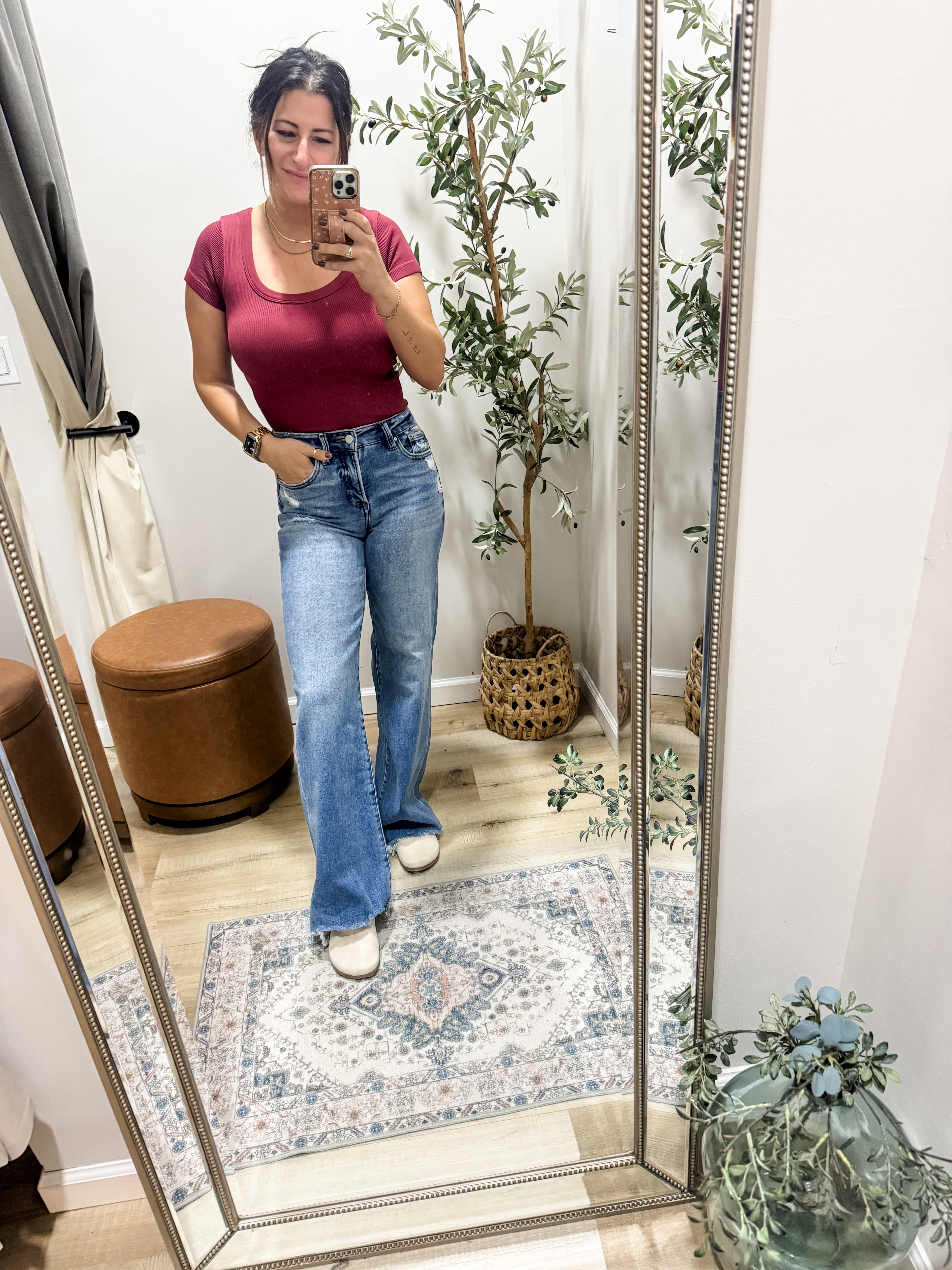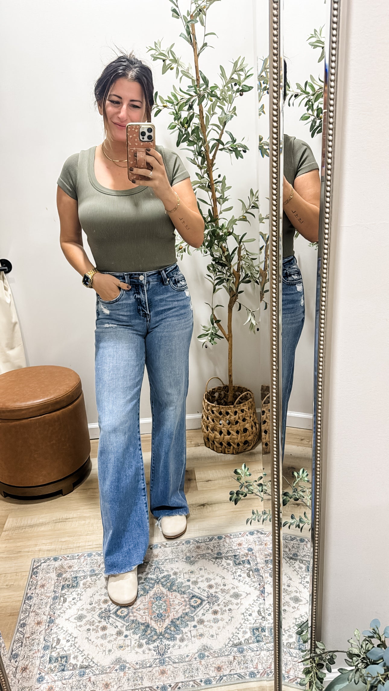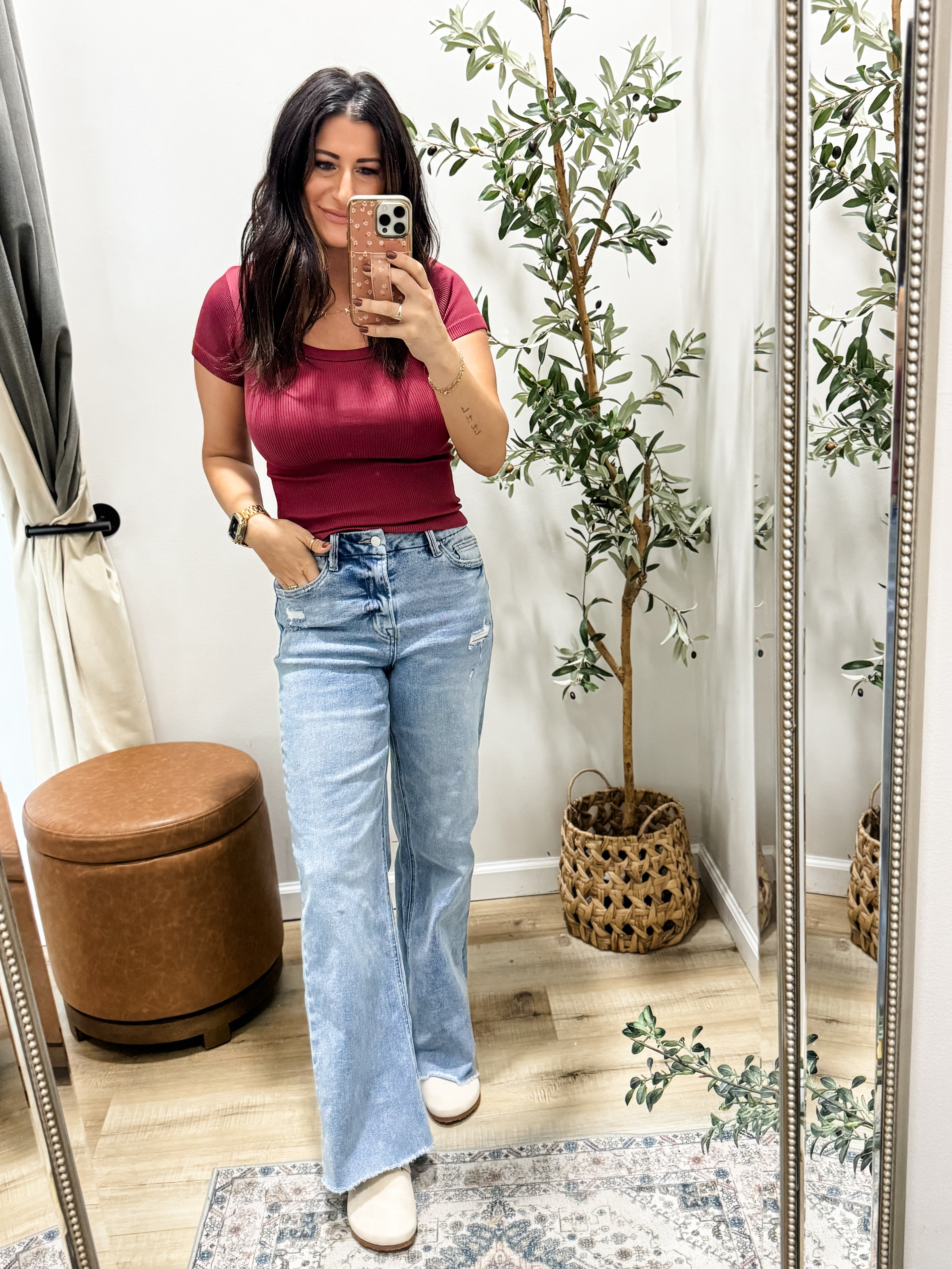 Ribbed Scoop Neck Compressive Short Sleeve 3 Colors ONE SIZE