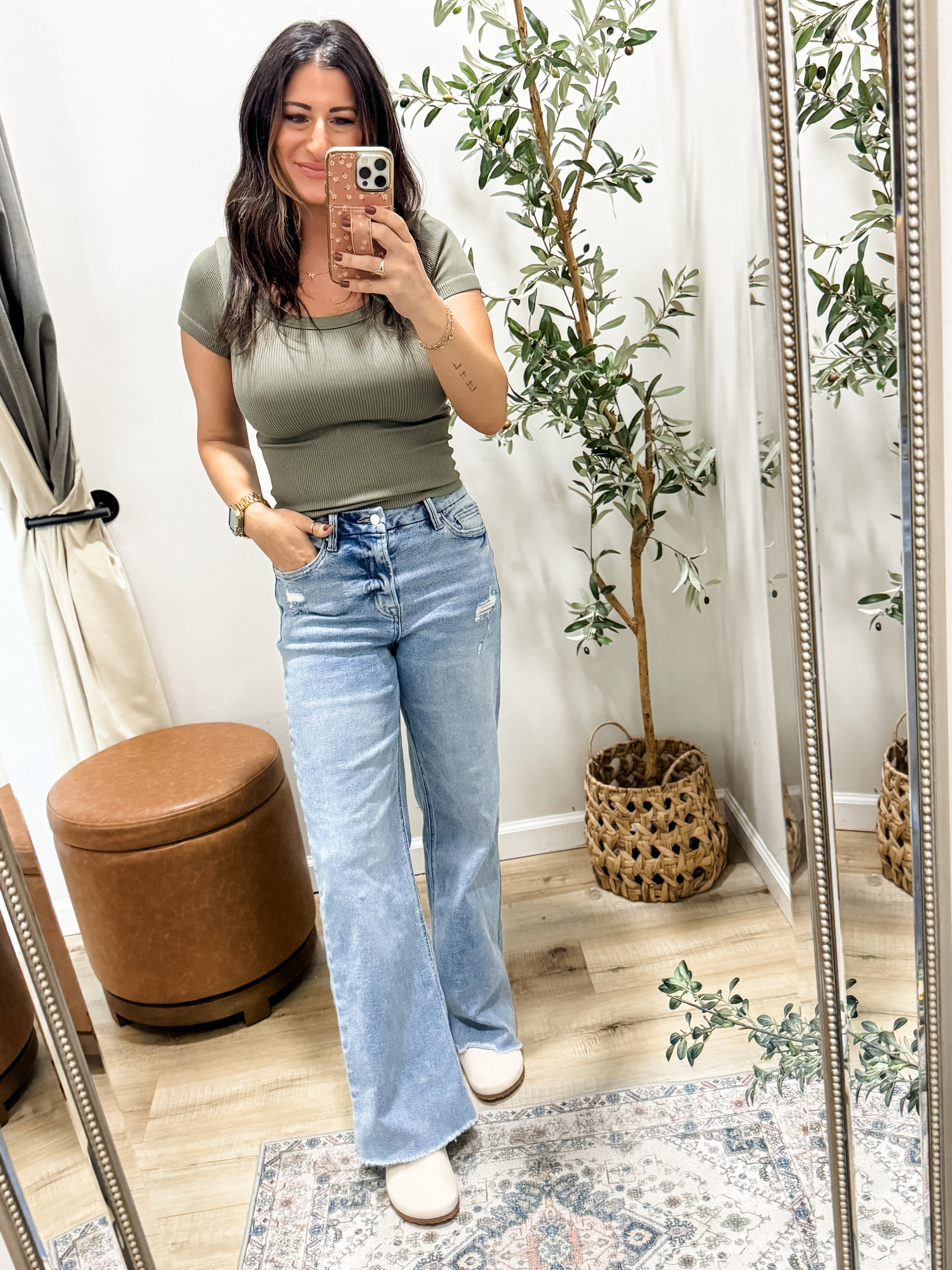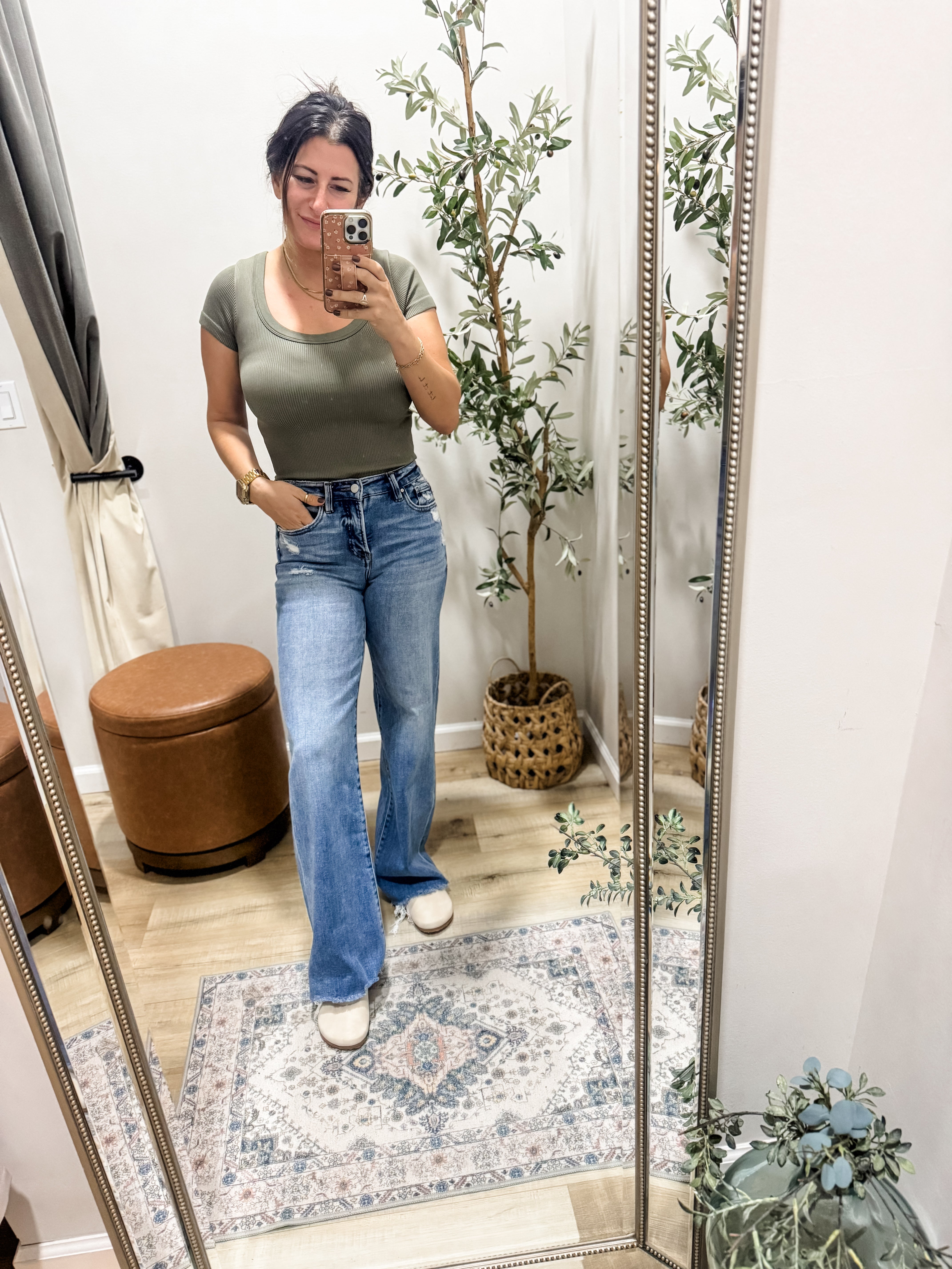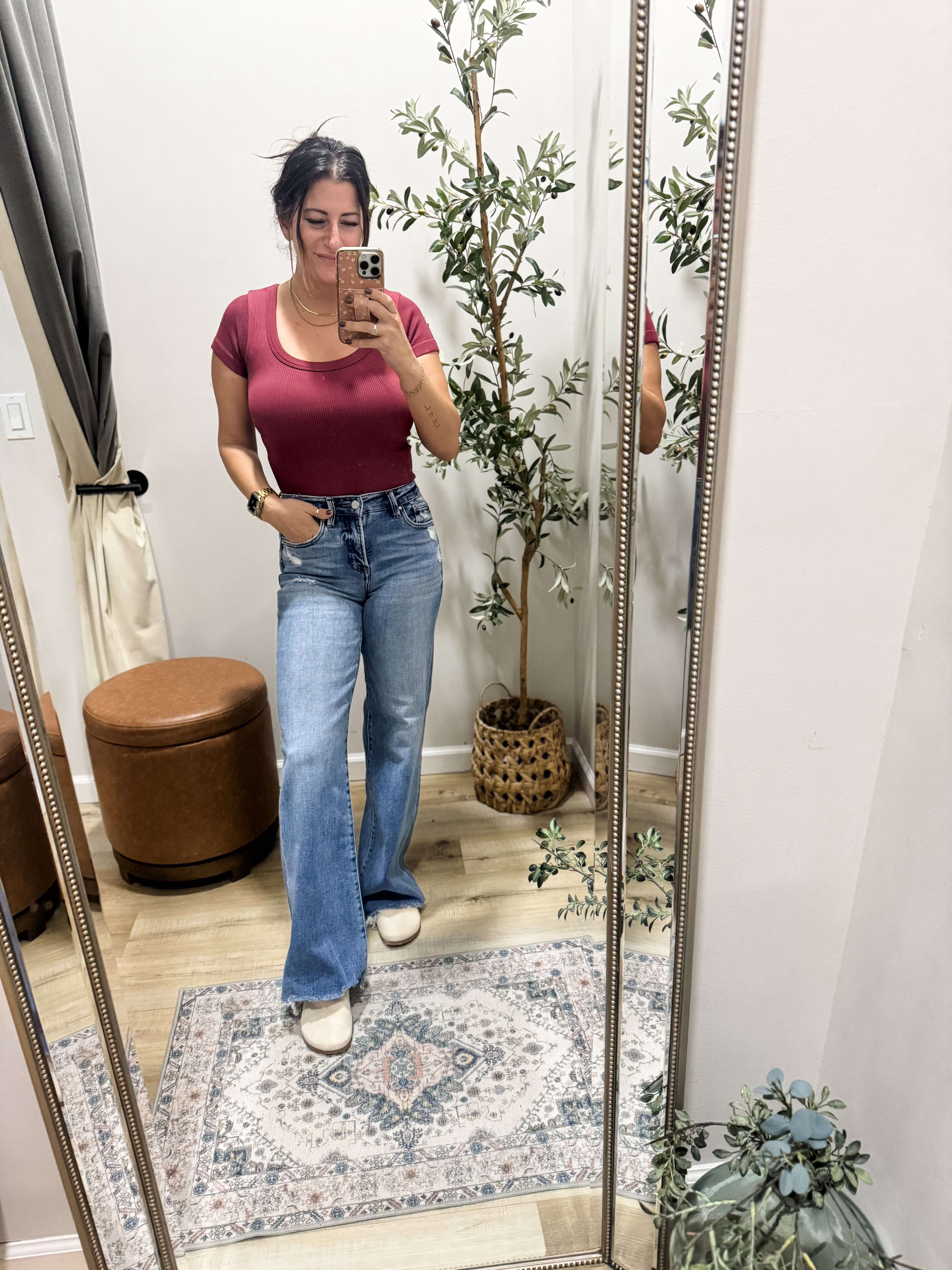 Ribbed Scoop Neck Compressive Short Sleeve 3 Colors ONE SIZE