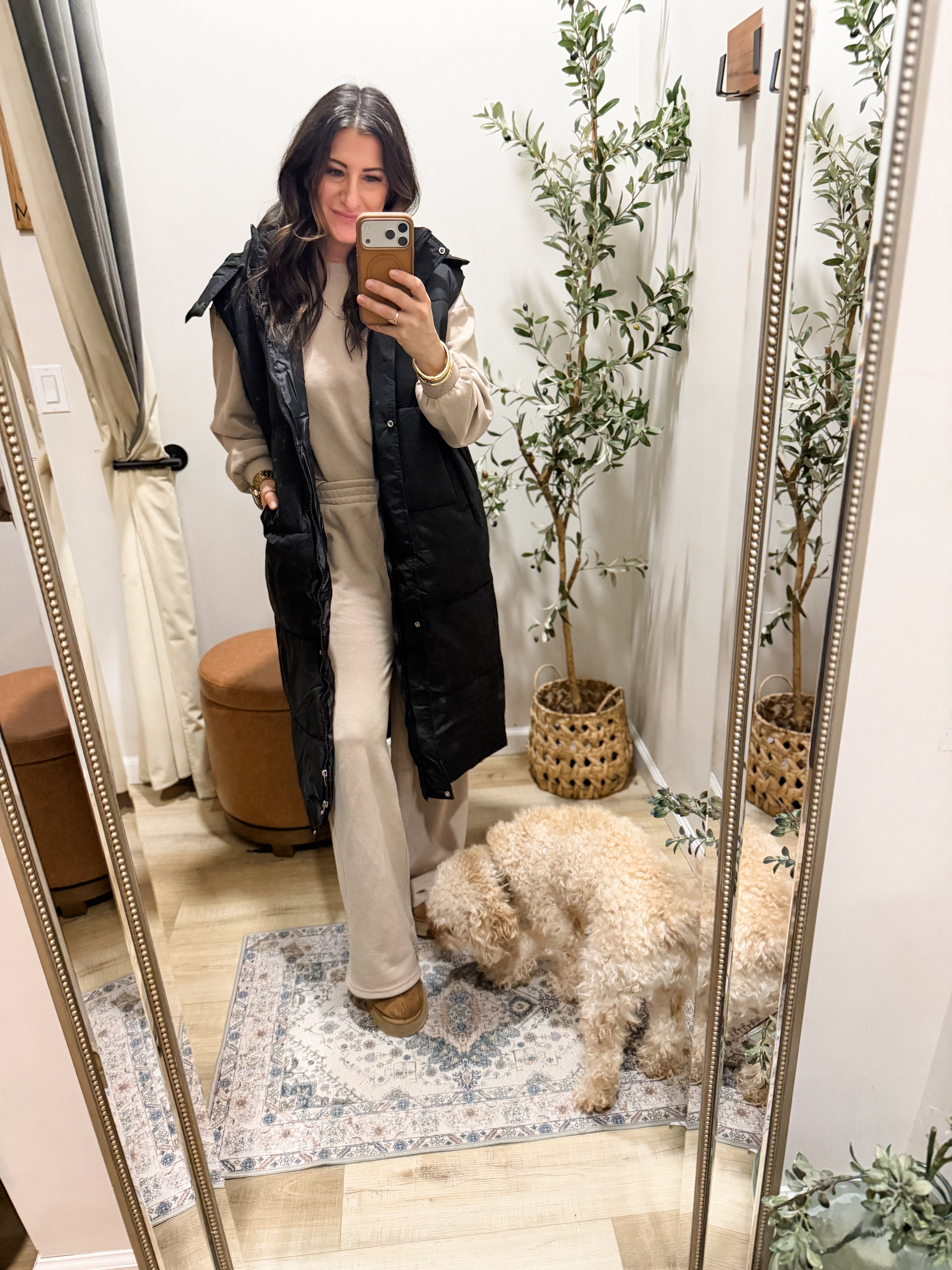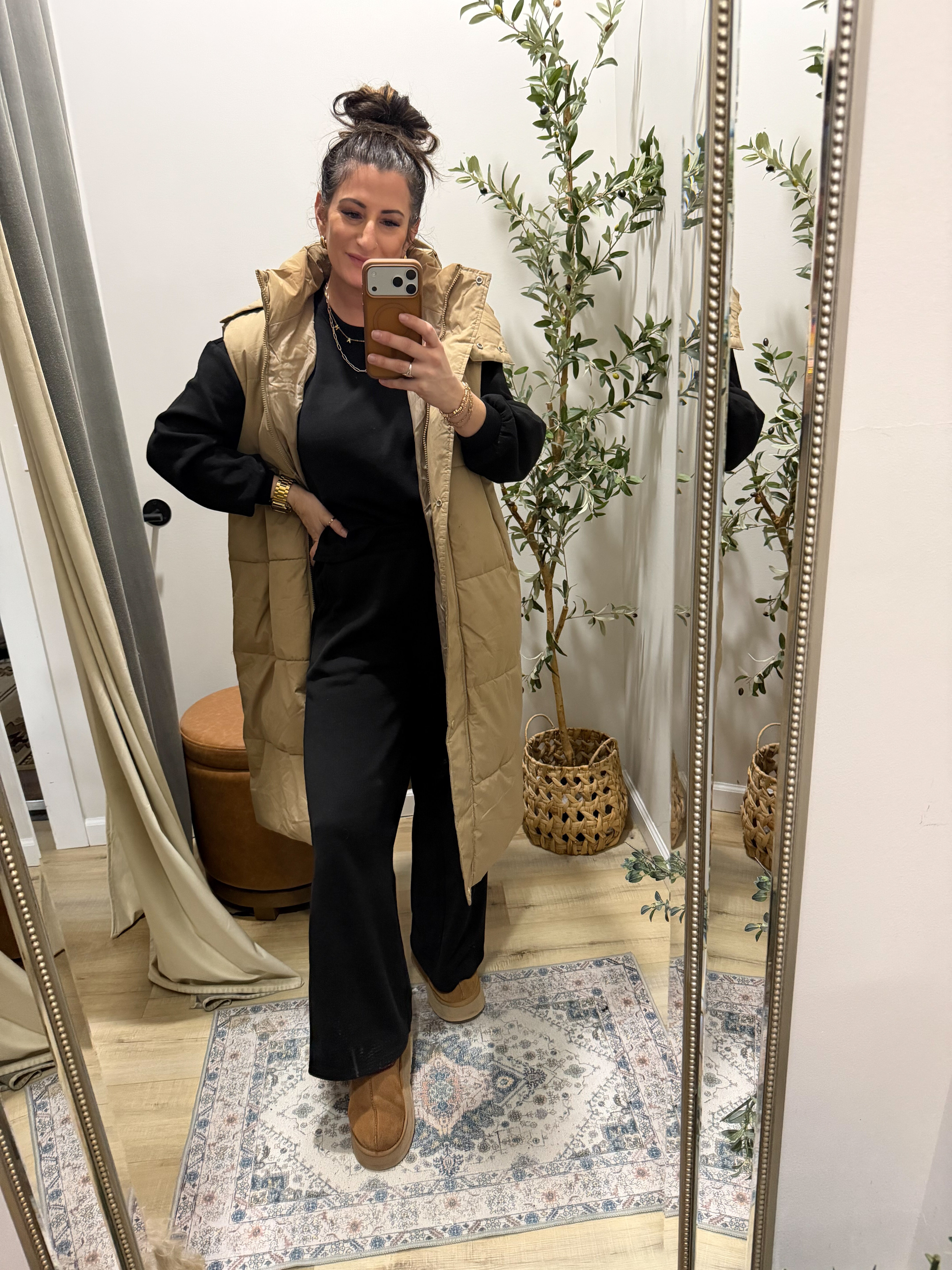 Thick DOWN Hooded longline vest with Pockets 2 colors Pre-Order