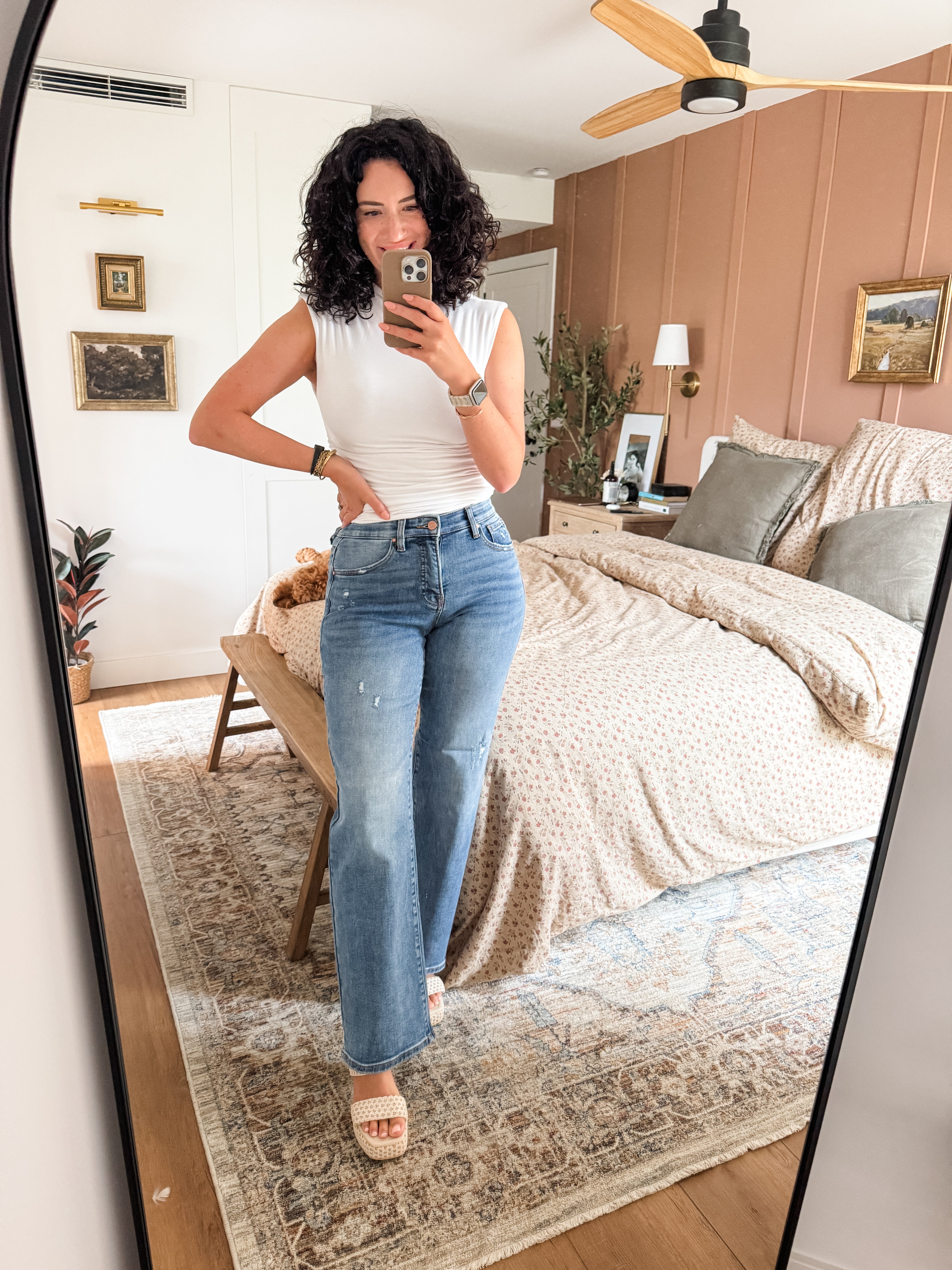 RISEN Tummy Control Elastic Band High Rise Wide Jeans