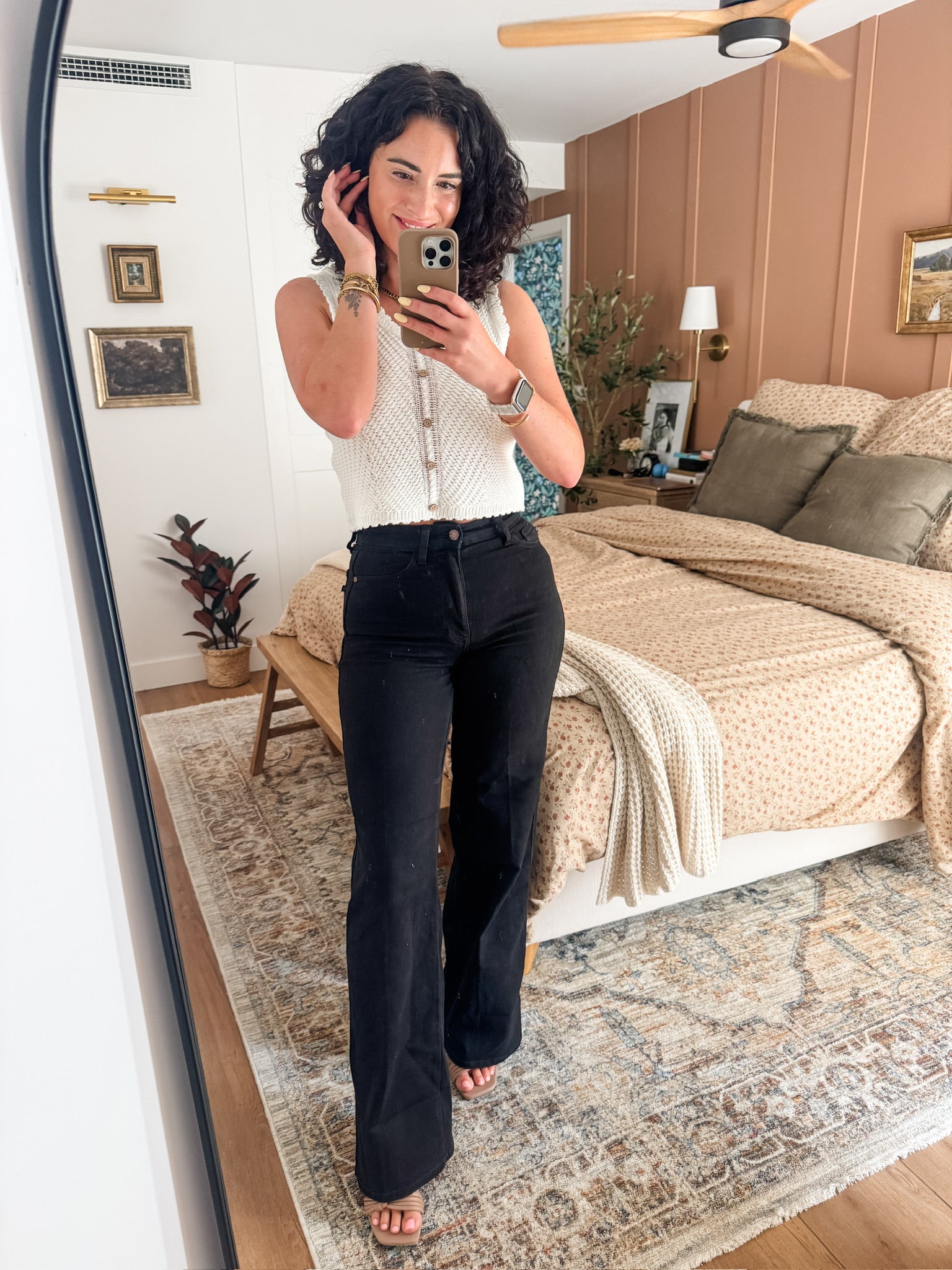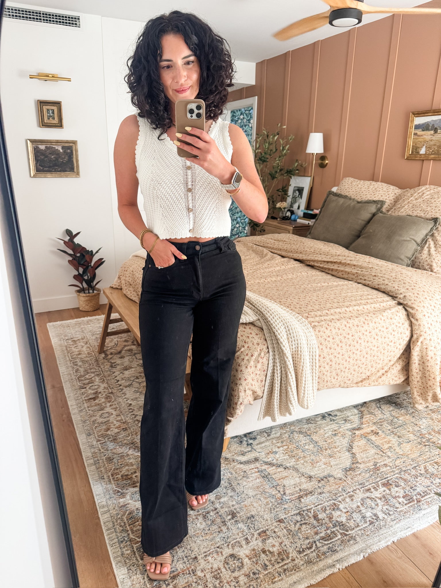 The High Waist Retro Wide Leg with Cuff jeans are a timeless and sophisticated choice for your wardrobe. With a high-waisted fit and wide-leg silhouette, these jeans offer a flattering and stylish look. The cuffed hem adds a modern and on-trend detail to the classic retro design. Perfect for pairing with heels for a dressed-up look or sneakers for a more casual vibe, these jeans are versatile and chic. Elevate your outfit with these classy and elegant wide-leg jeans that will keep you looking fashionable and polished.