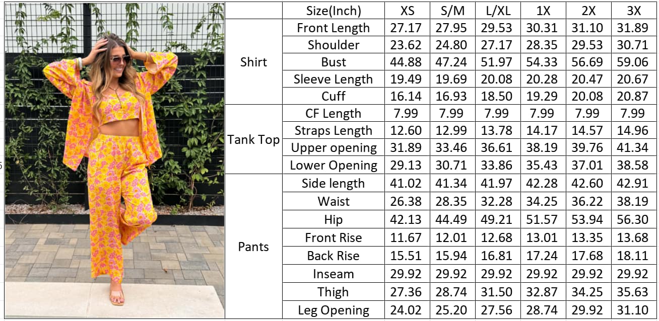Make a bold statement with this vibrant 3-piece floral set! Featuring a flowy button-down top, a matching crop tank with smocked back and adjustable straps, and wide-leg pants with an elastic waistband. This set combines comfort with playful with a hint of retro-inspired style pool side style!