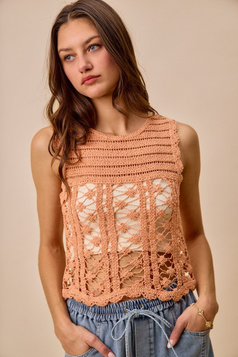 Crochet Knitted Lace Sweater Tank Top
