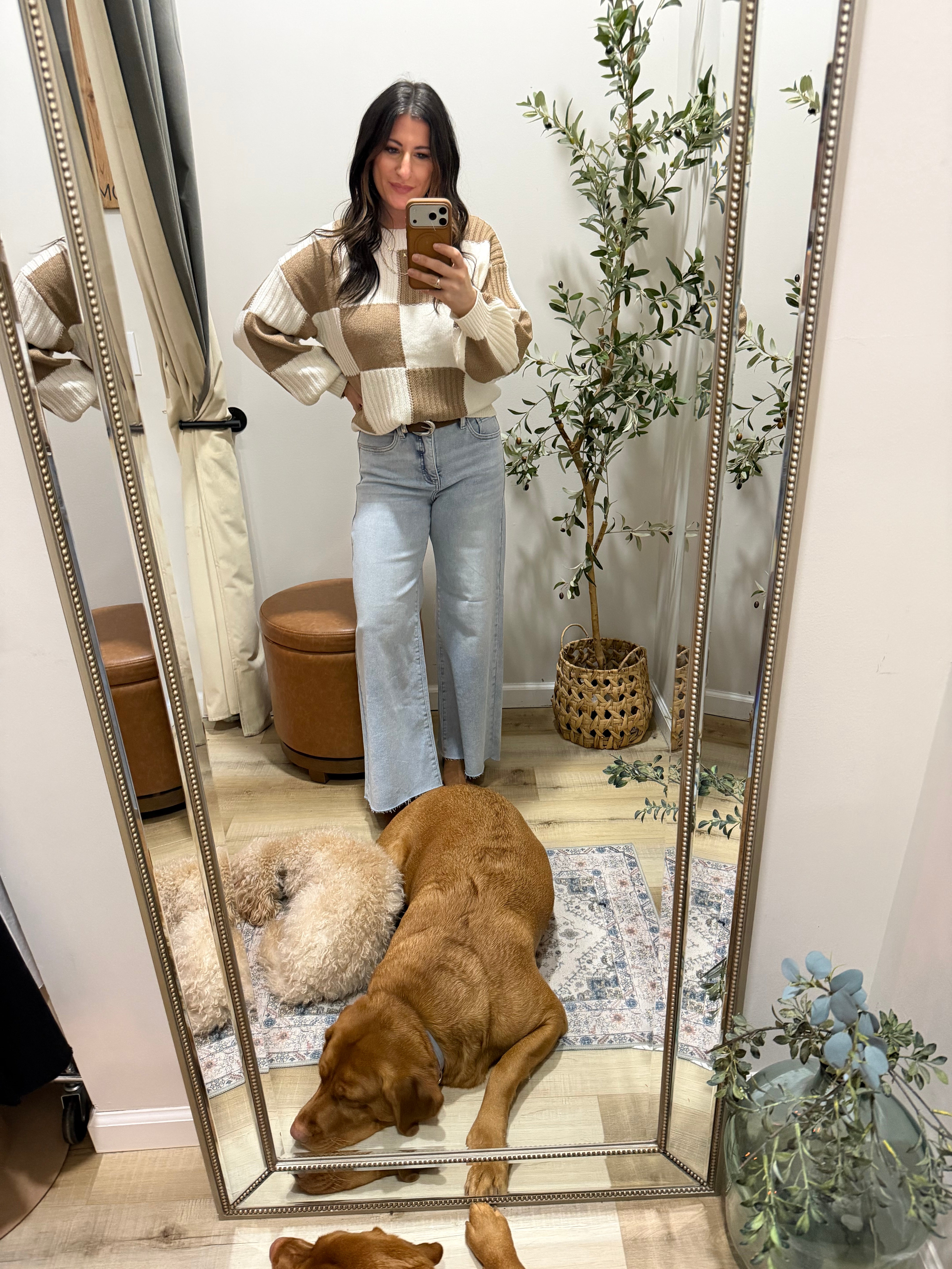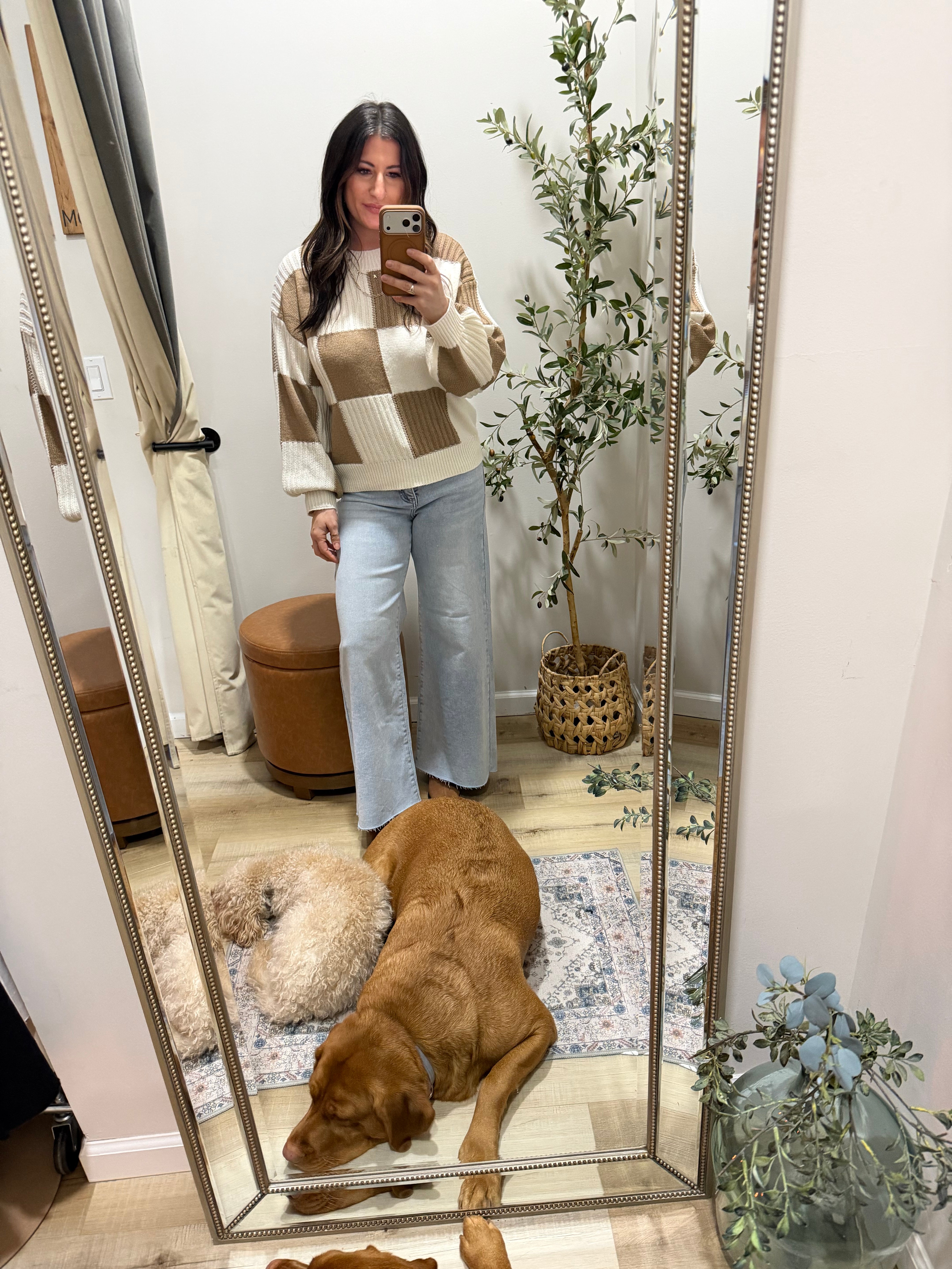 Elevate your winter wardrobe with this Ribbed Color Block Checkered Plaid Sweater, featuring a stylish and playful combination of textures and patterns. The ribbed detailing adds depth and dimension to the design, while the color block checkered plaid creates a trendy and eye-catching look. Stay warm and cozy in this sweater that seamlessly blends comfort with fashion-forward style. Perfect for layering or wearing on its own, this sweater is a versatile and statement-making piece for the season. Make a bold fashion statement with this Ribbed Color Block Checkered Plaid Sweater that will keep you stylish and snug all winter long.