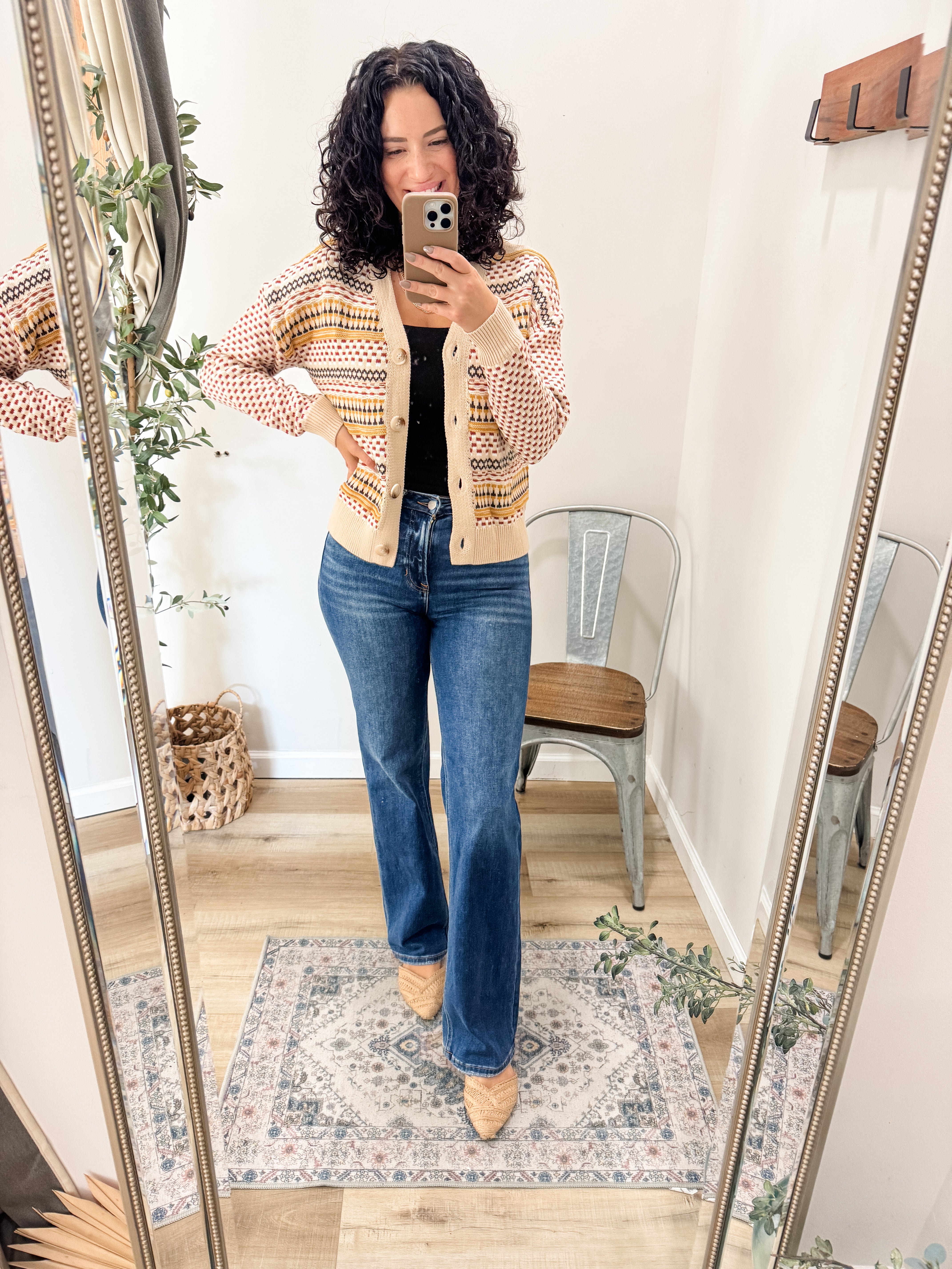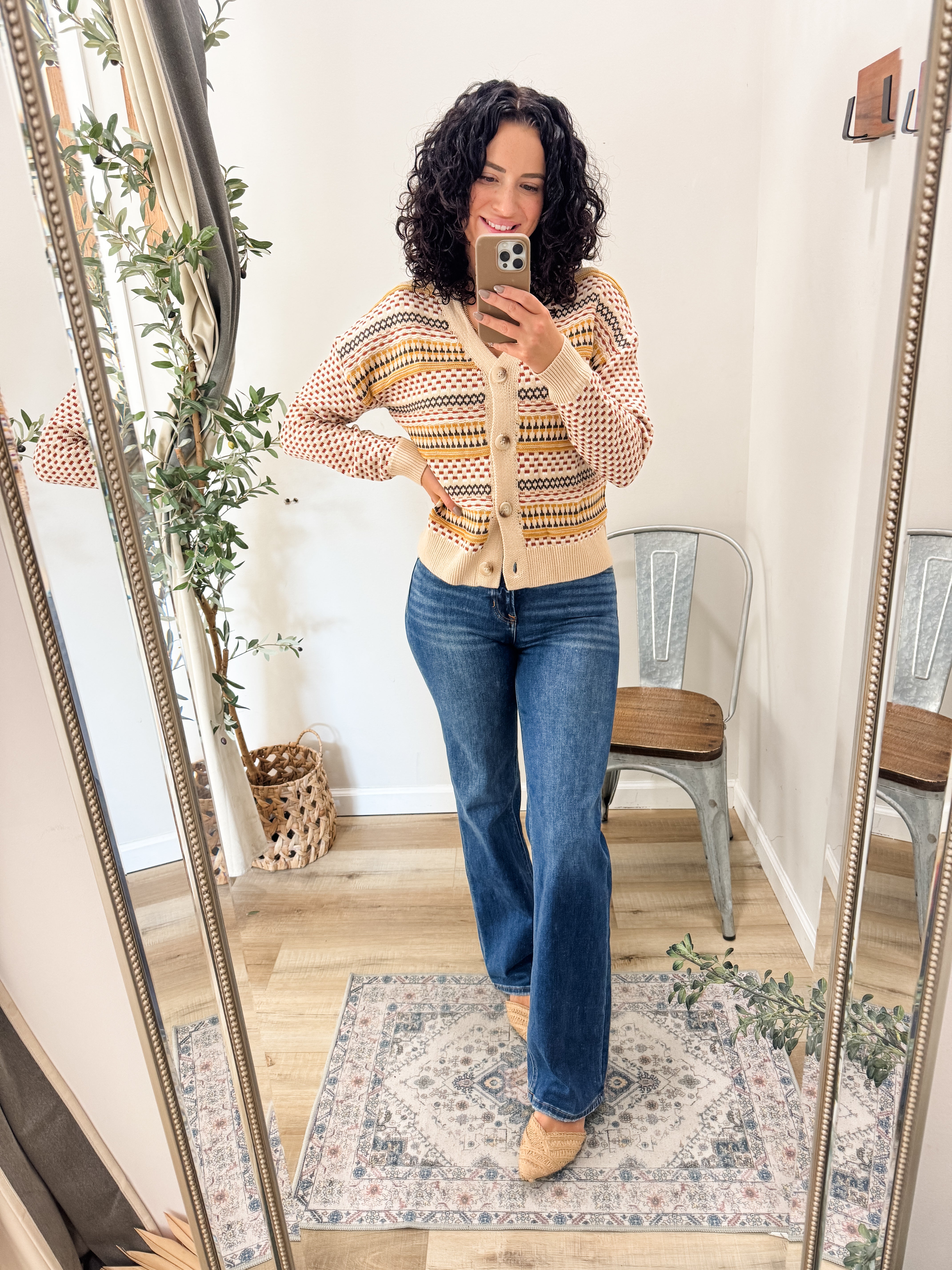 Our Effortless Elements Striped Cardigan makes a perfect addition to your wardrobe. Made from cozy sweater knit material, this cardigan features a banded ribbed neckline and V-neckline, as well as full front button closures. With a relaxed drop shoulder, and banded, ribbed cuffs and hemline, this cardigan is effortlessly stylish and comfortable.