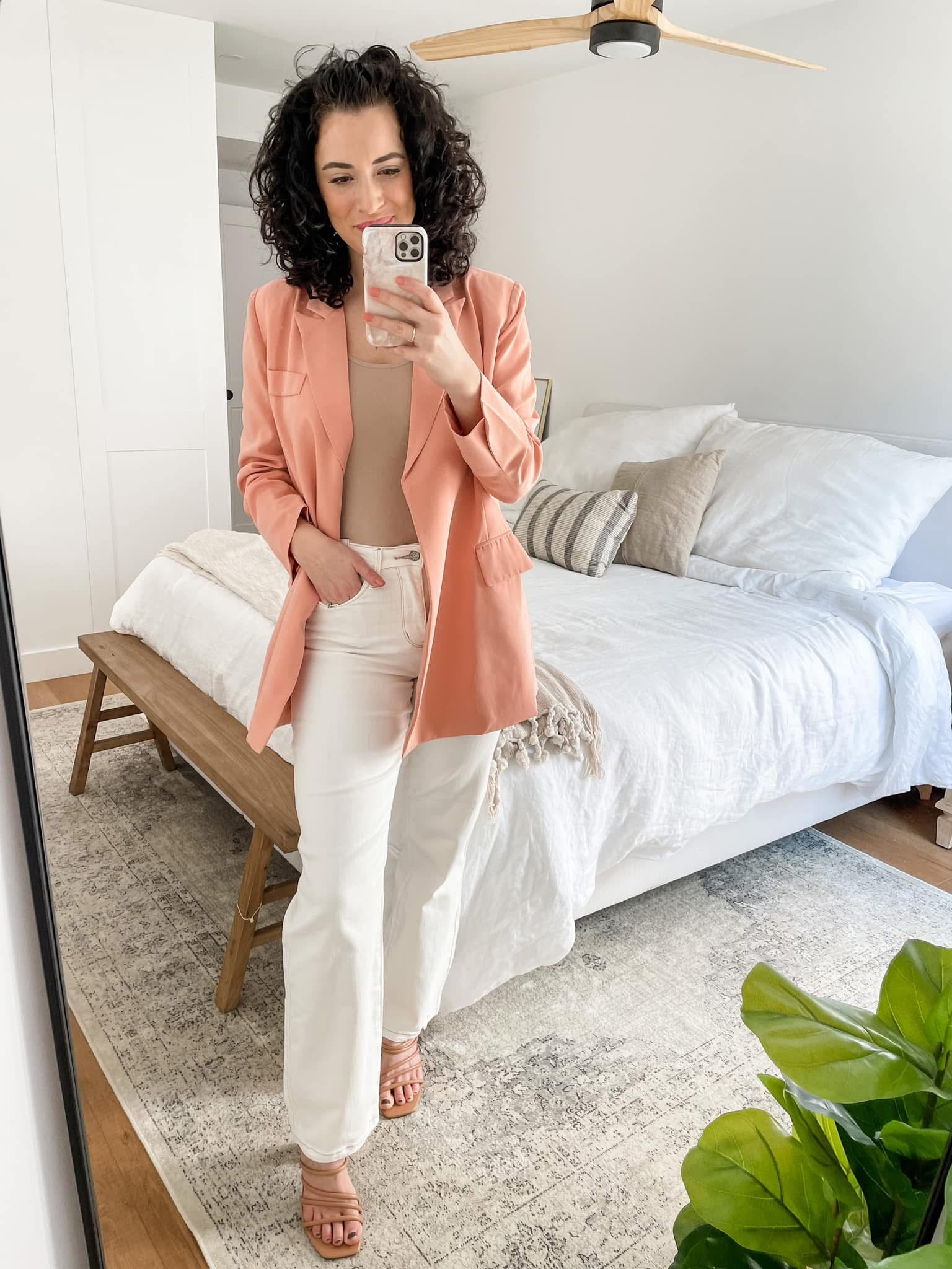 Having timeless pieces like the Eugenie Blazer in your closet will set you up for success every morning! This perfect blazer features a non-stretch fabric that shapes a collared neckline, notched lapels, slightly padded shoulders, and buttoned long sleeves that create a ruched look! A tailored bodice features an open front, two functional welt pockets, and a kick pleat at back.