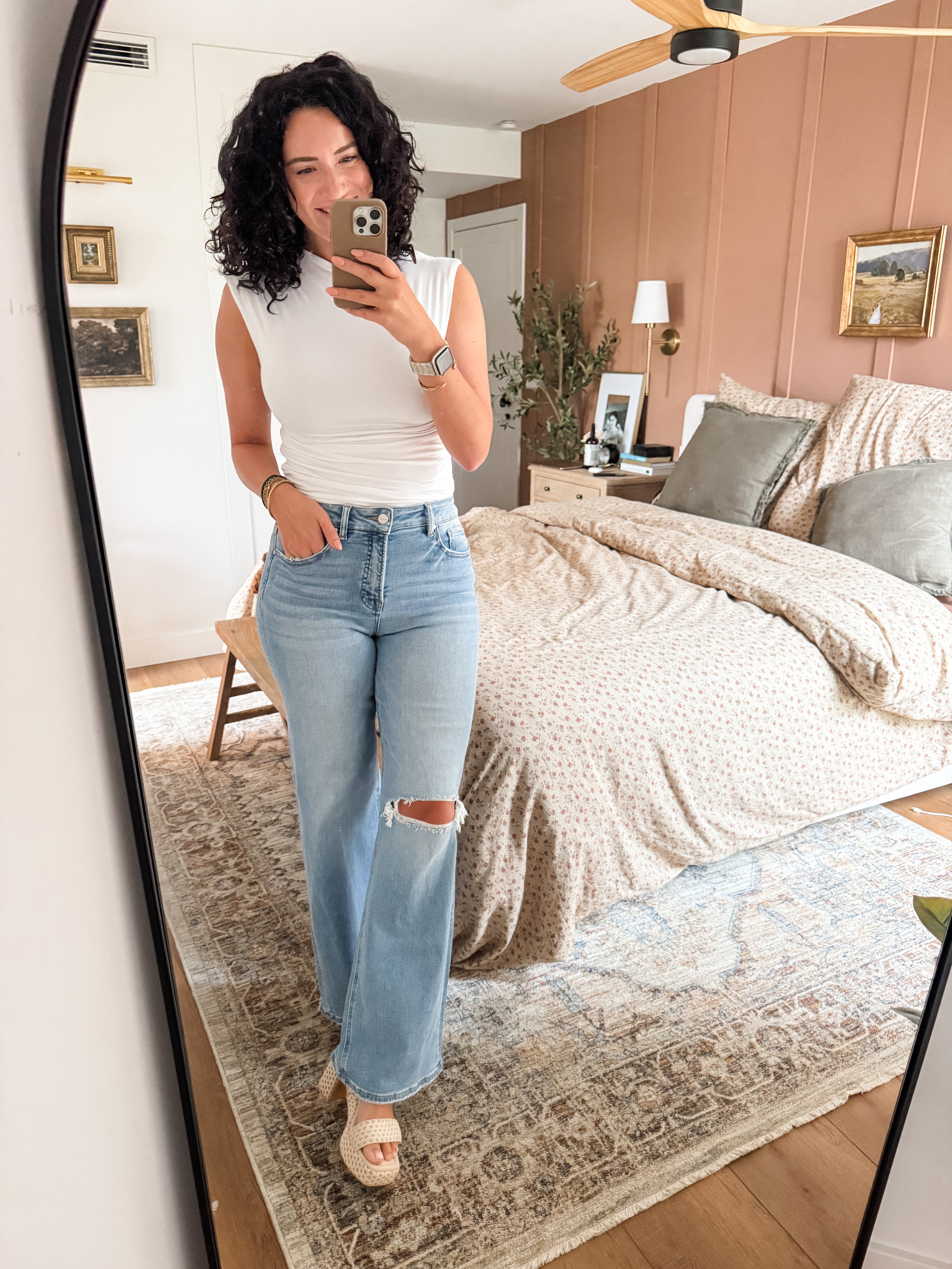 RISEN Park Distressed Wide Leg Jeans