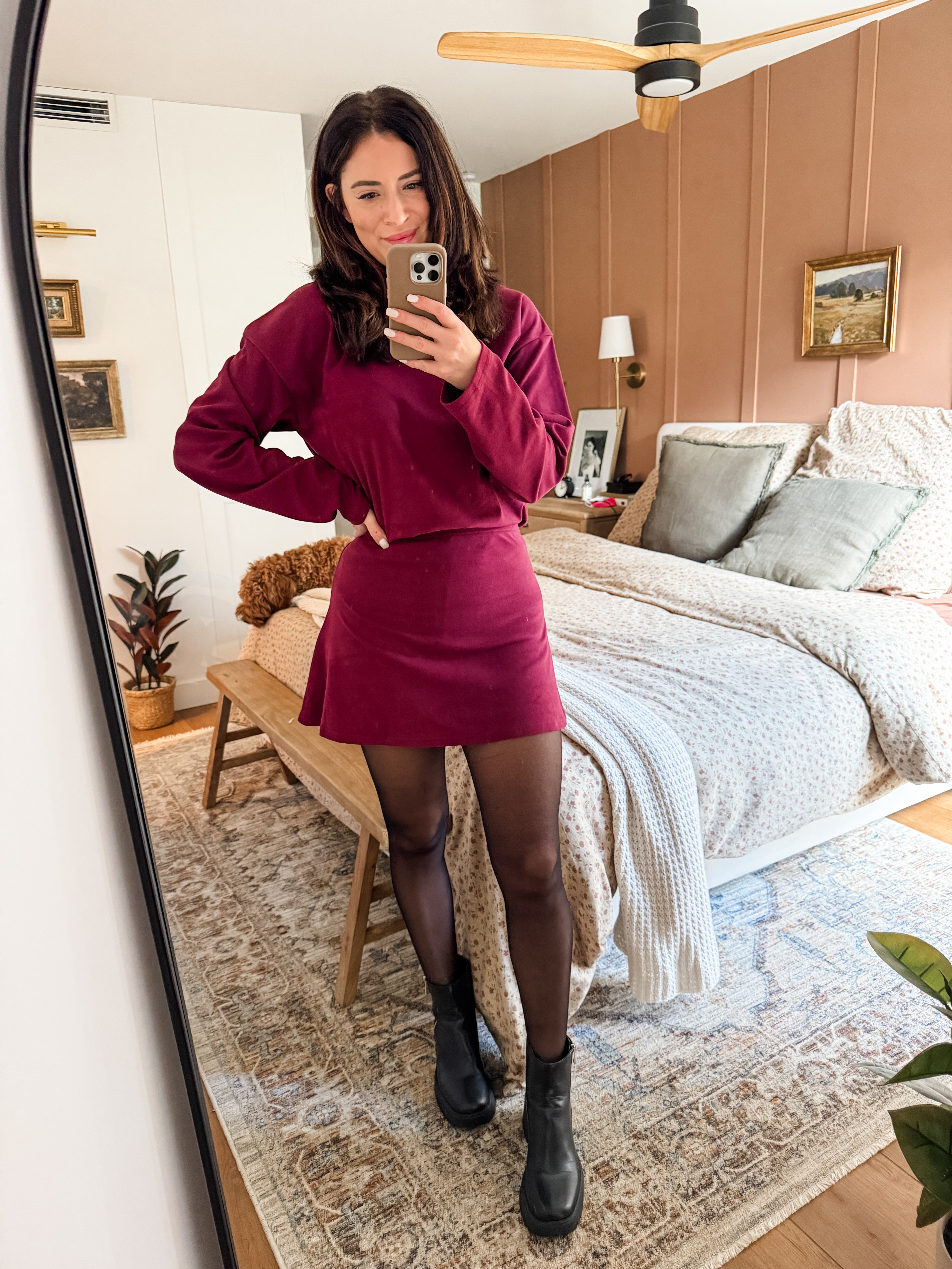 PREORDER Turtleneck Dropped Shoulder Sweater and Skirt Set 4 Colors