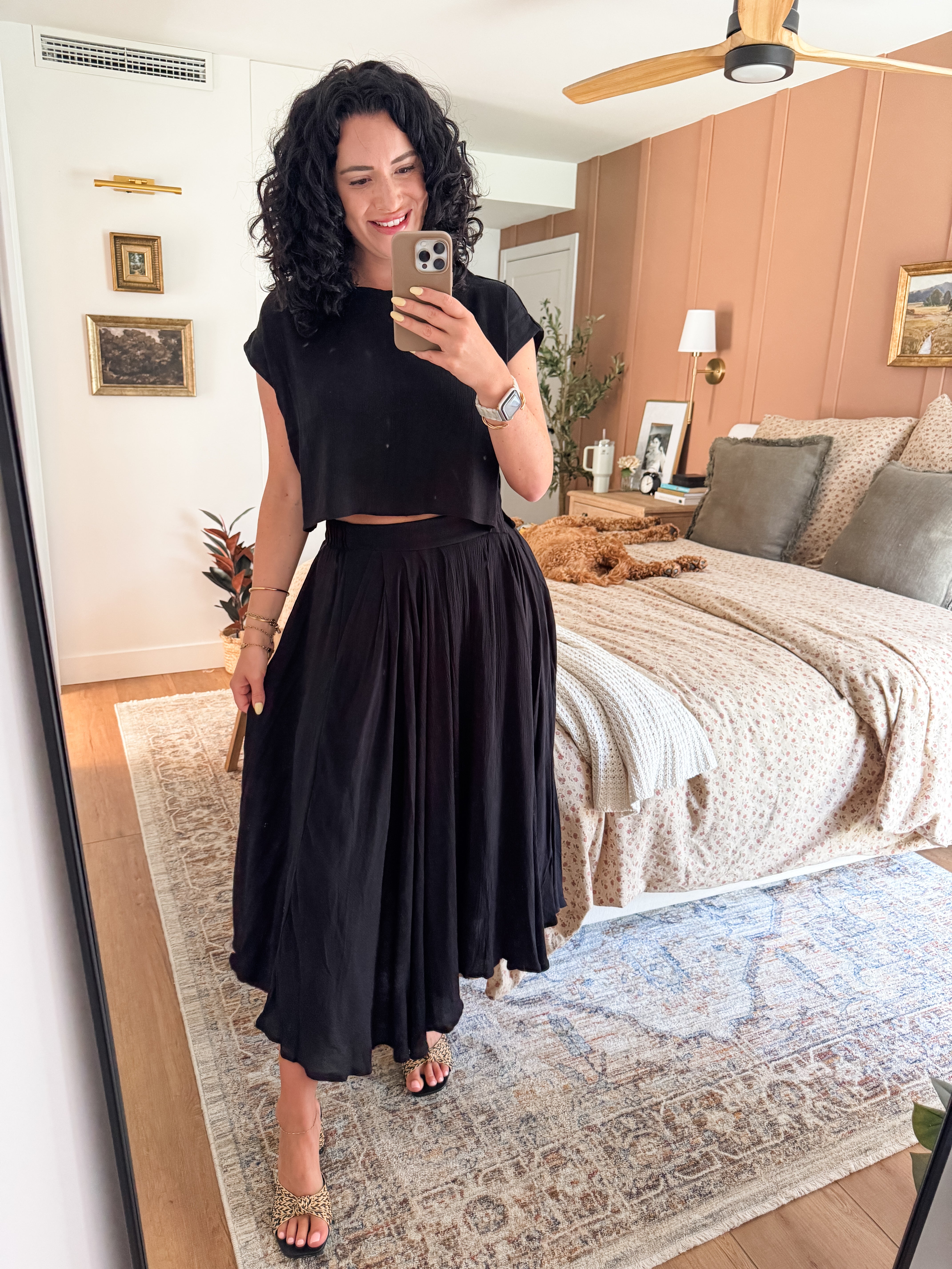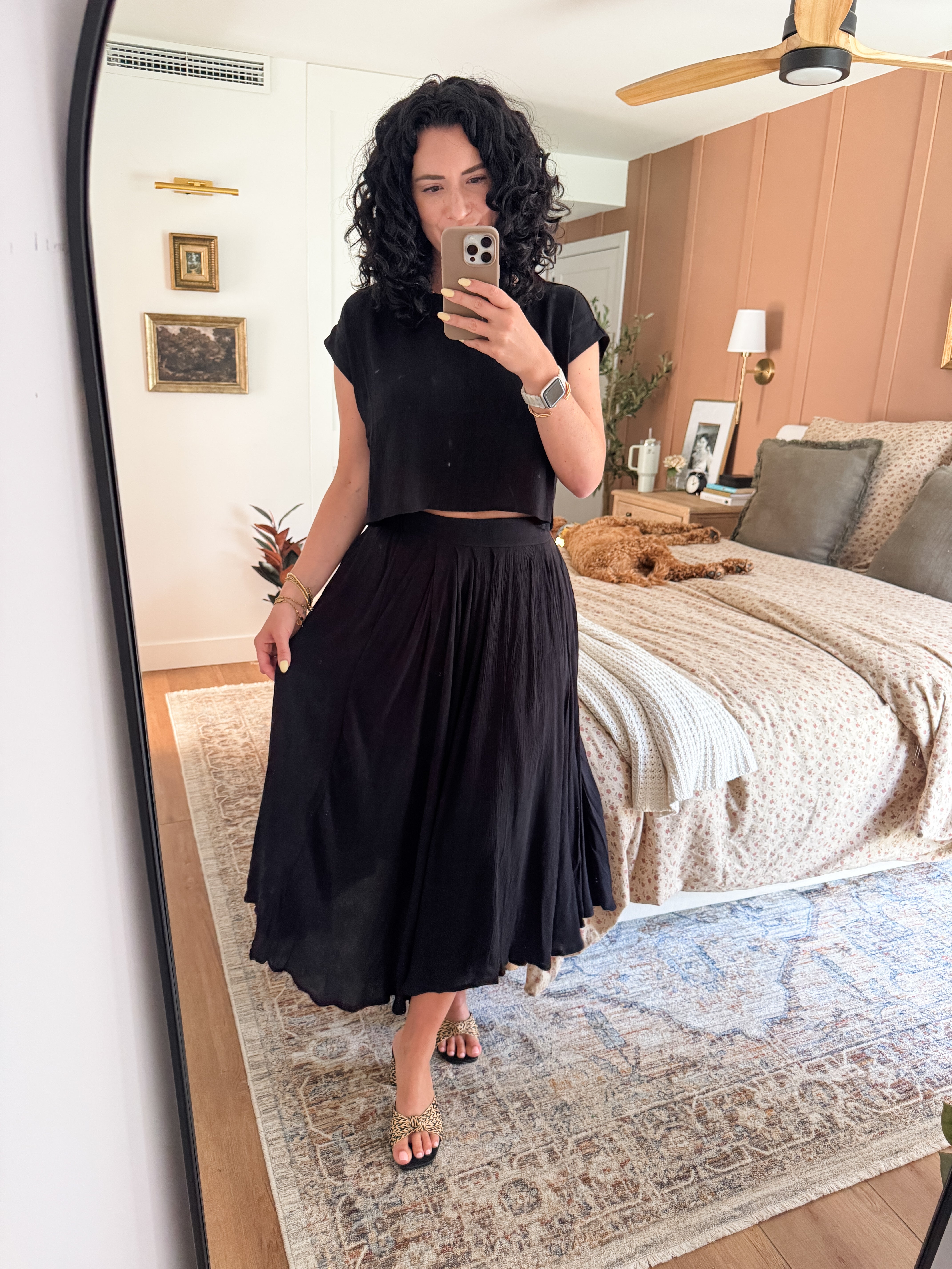 Woven Crinkle Gauze Crop Tee and Skirt Set